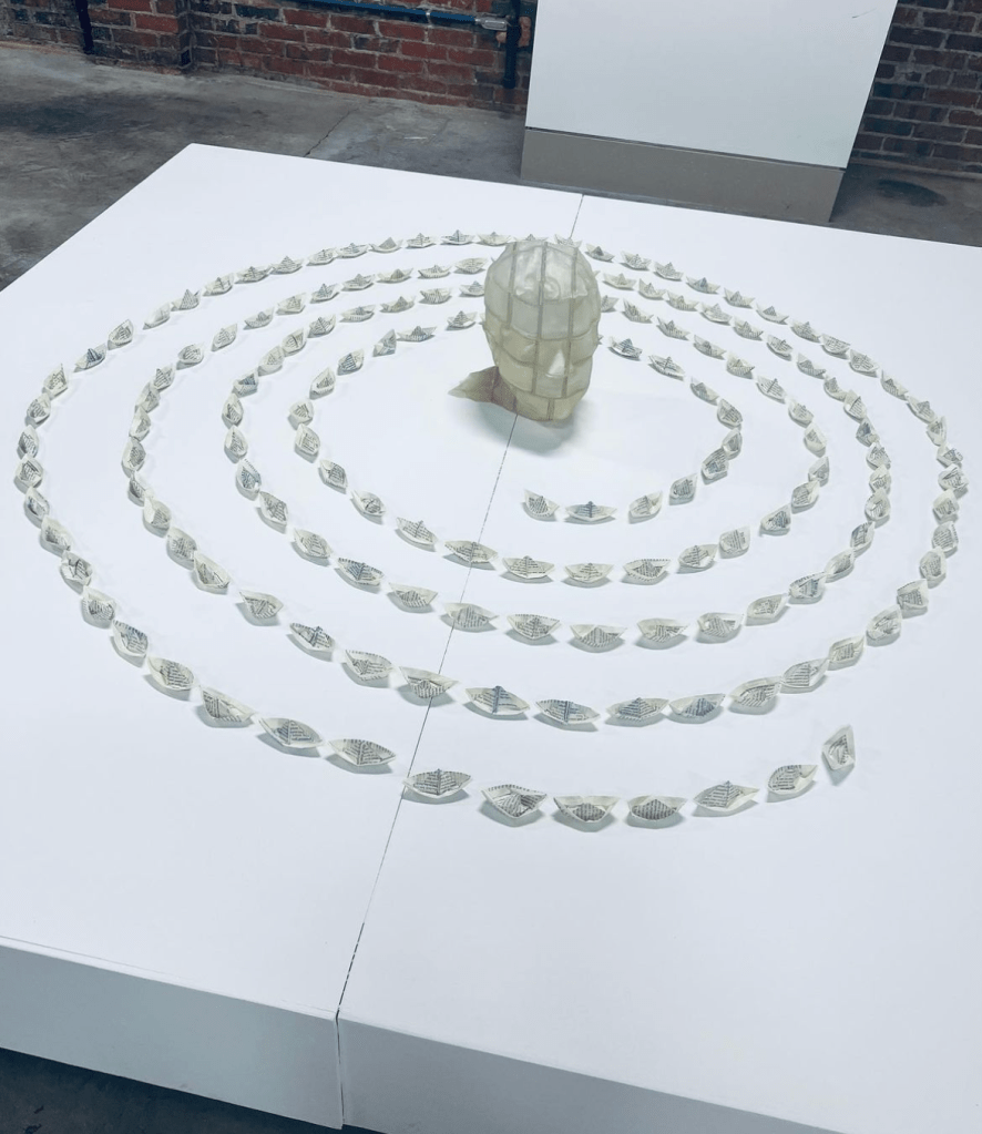 AA Big Book Pages, Resin, E6000, Button Lamps, 15″ x 72″ x 72″.