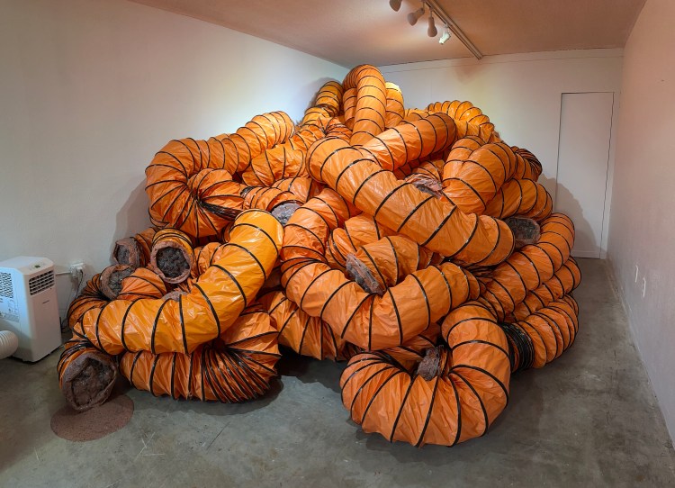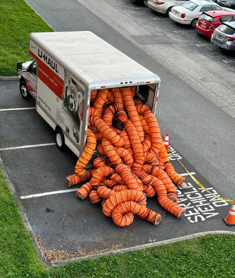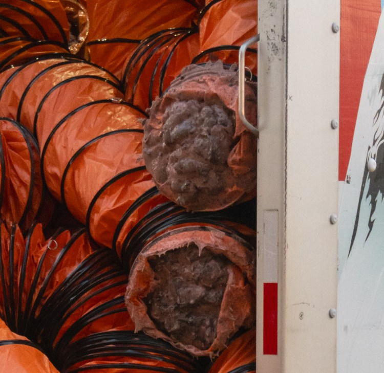 Broken Second, 2024, (U-Haul truck iteration), U-Haul Truck, Air Conditioning Ducts, Silicone, Insulation Foam, Dirt, Size Varies (site specific)
