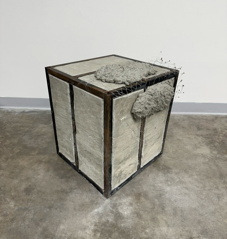 Crushed, 2024, Cement, Iron, Guitar Strings, 21″ x 16″ x 15″