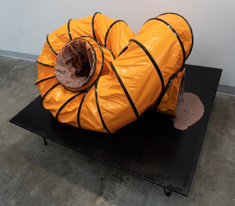 Sunk Cost Fallacy 1 of 3, 2023, AC Duct, Rebound 25 Silicone, Plaster, Dirt, 42″ x 44″ x 40″