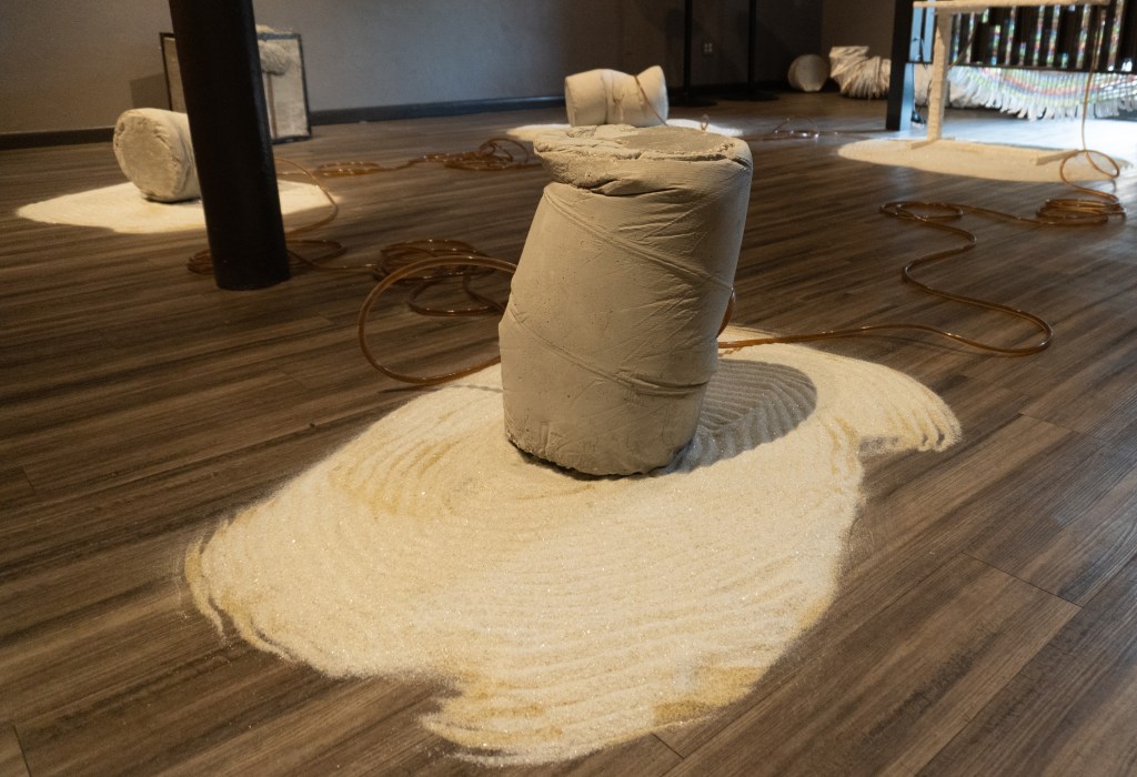 Broken Second, 2024, (Favo iteration), Air Conditioning Ducts, Silicone, Insulation Foam, Dirt, Size Varies (site specific)