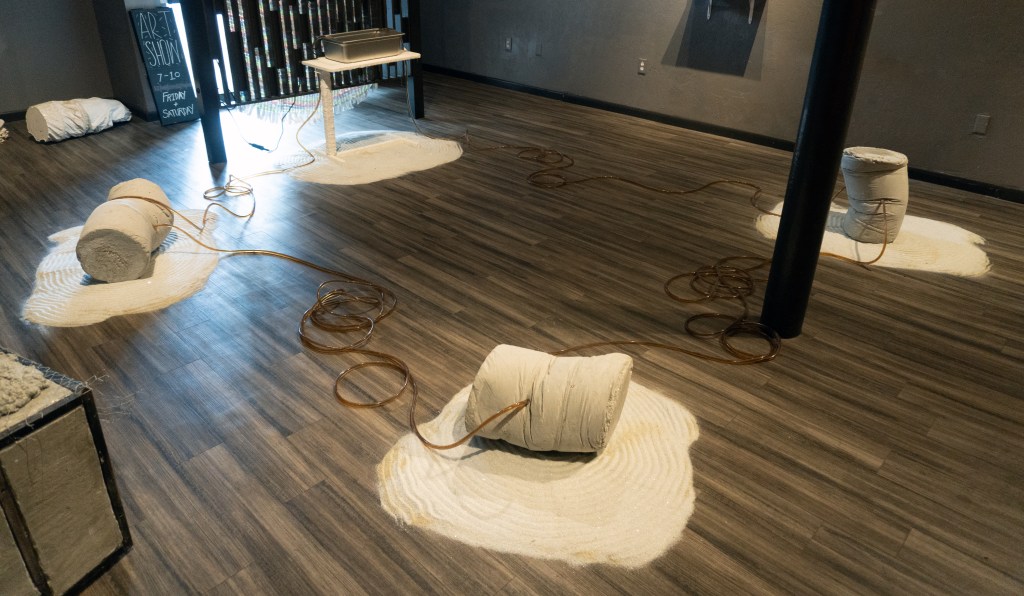 Broken Second, 2024, (Gainesville iteration), Air Conditioning Ducts, Silicone, Insulation Foam, Dirt, Size Varies (site specific)