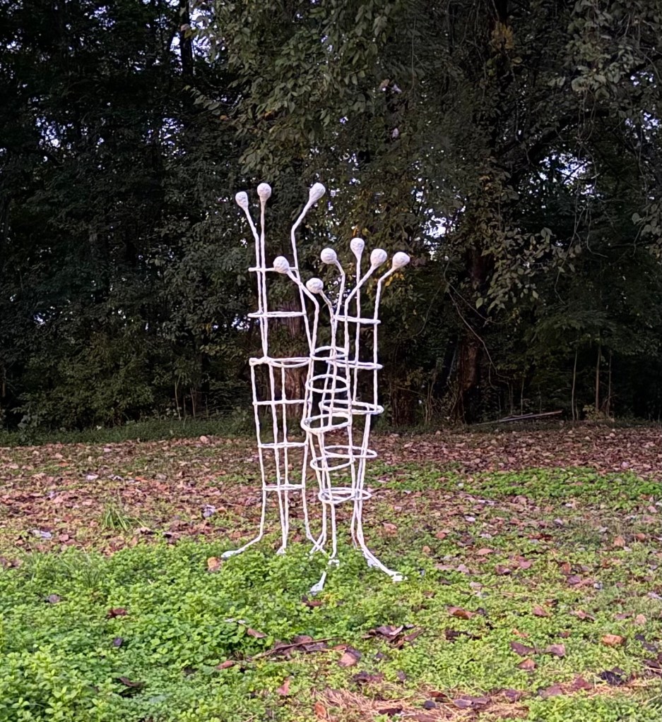 Fresh from the Wonder Lips, 2025, tomato cages, epoxy putty, resin, 96″ x 44″ x 46″